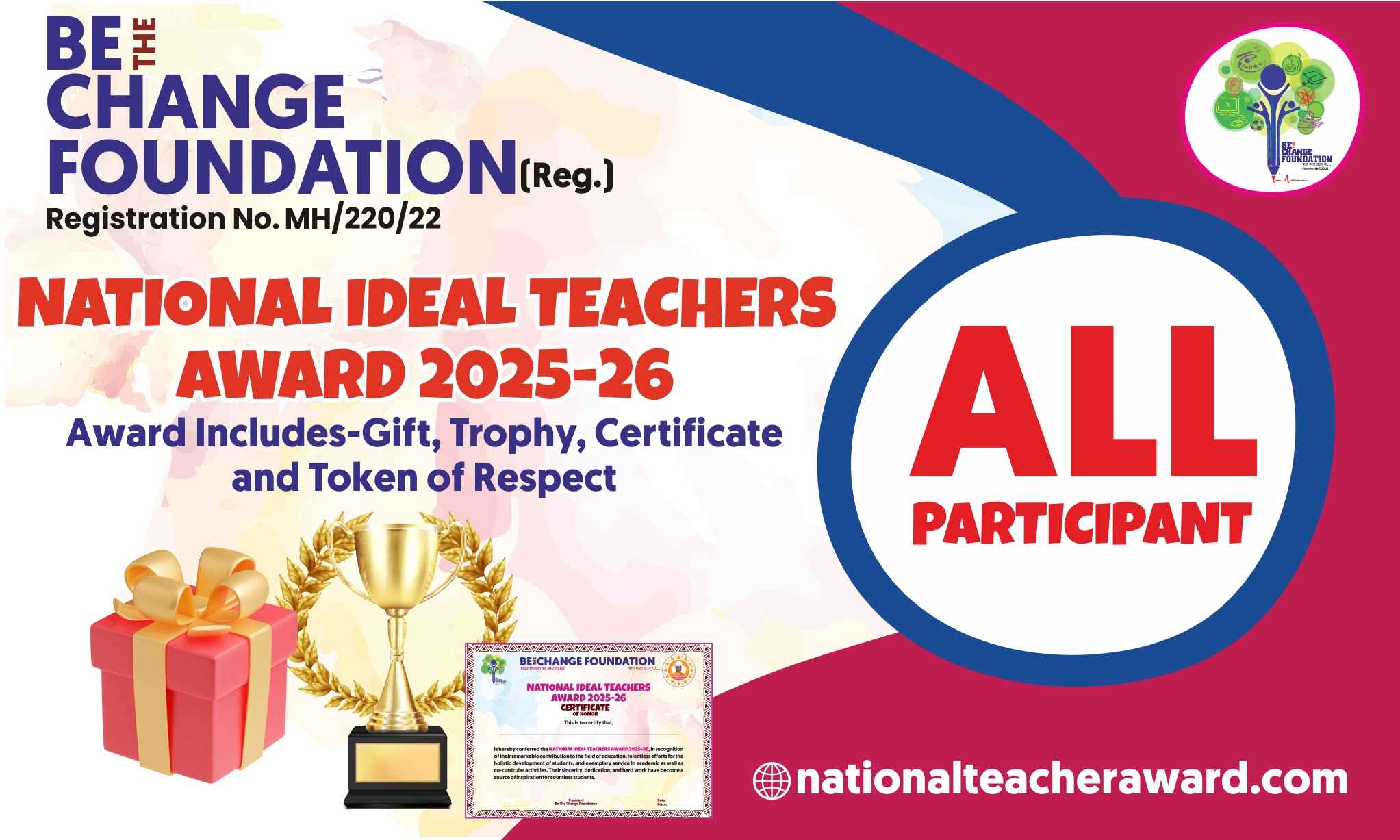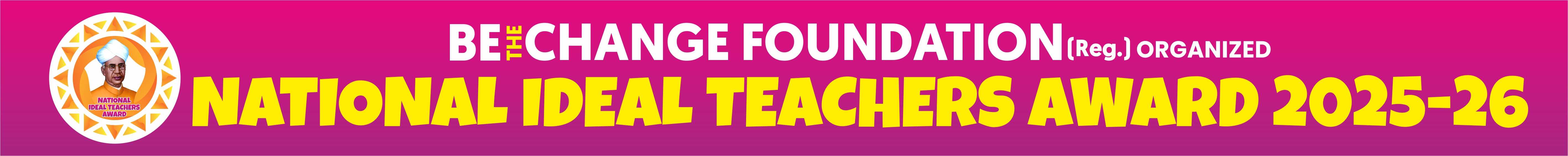 Teachers who work with dedication are honored every year by various government departments and social organizations through different awards. However, many hardworking, sincere, and innovative teachers remain deprived of such recognition, and their efforts do not reach society. To identify and honor such teachers, Be The Change Foundation has organized the National Ideal Teacher Award 2025-26. Therefore, teachers who have already received awards from the central government are kindly requested not to submit nominations again. Such teachers may instead guide us by contacting Be The Change Foundation through phone or email and share their valuable suggestions.
