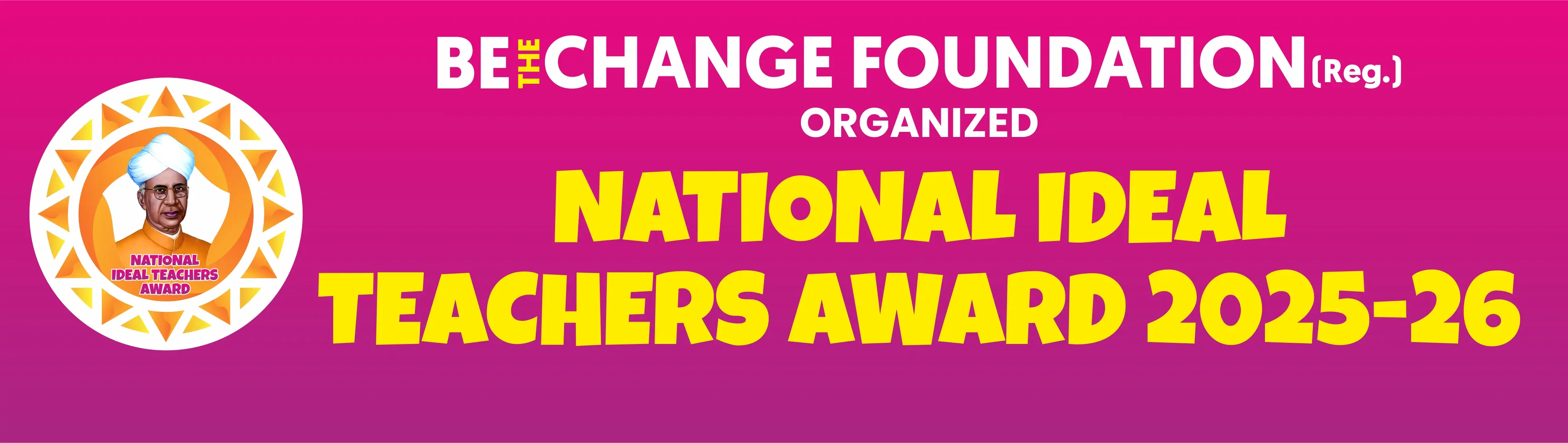 Ans.The National Ideal Teacher Award 2025-26 is being organized by a reputed NGO called “Be The Change Foundation.”